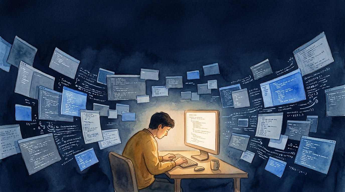 And for about six months, I convinced myself this was better. The sheer volume of stuff happening on my screen felt like progress. Tokens streaming, files appearing, tests being generated. I was doing three things at once and each one was moving forward. How could that not be more productive?